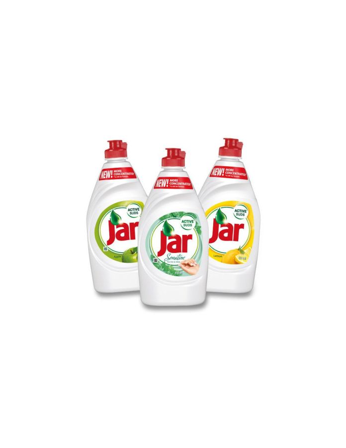 Jar má čisticí účinky, na které se při mytí nádobí můžete vždy spolehnout. Vydrží 3x déle, než očekáváte. Každá kapka umyje spoustu mastného nádobí, takže pomáhá ušetřit. Ať už se jedná o talíře a skleničky nebo hrnce a pánve – na výzvě nezáleží. Účinné složení Jaru si s mastnotou snadno poradí. Dostupný v různých velikostech a vůních jako například Lemon, Apple a Sensitive.